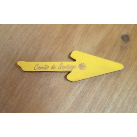 Flecha en madeira do camiño de Santiago pintada en amarillo a mán.Medidas de 9x3 cm.